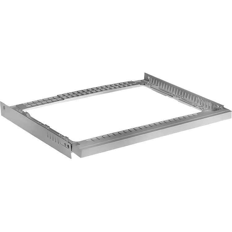 Изделие имеет ширину 484,8 мм, глубину 599,8 мм и высоту 51,3 мм. Такие параметры позволяют разместить его между стиральной машиной, устанавливаемой в нижней части колонны, и сушильной машиной, монтируемой сверху. Ширина и глубина согласованы со стандартными размерами полноразмерной техники, что обеспечивает равномерное распределение нагрузки и устойчивость конструкции. Вес соединительного элемента составляет 4,1 кг, что свидетельствует о достаточной жесткости для фиксации верхнего прибора. Использование данного компонента исключает необходимость в дополнительных нештатных конструкциях или самостоятельной адаптации монтажной площадки, снижает риски вибрации и смещения устройств в процессе эксплуатации.