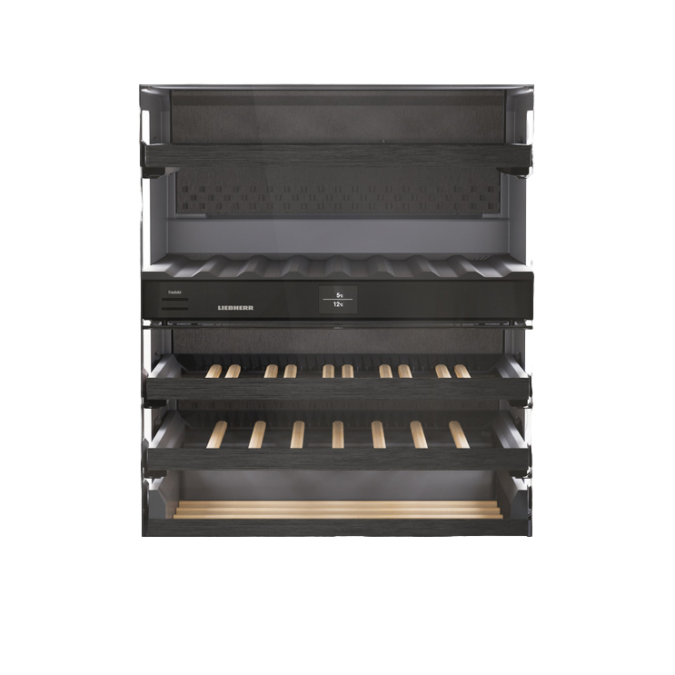 Винные шкафы Liebherr/ Vinidor Selection, высота 86-92 см, 2 темп. зоны, дверь стеклопакет, рамка двери GlassBlack, TipOpen, сенсорный дисплей Touch&Swipe. Важно: увеличенная высота встраивания: 86-92 см