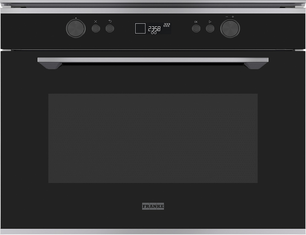 Духовой шкаф Franke FMY 45 MW XS/ Best, Электрический компактный духовой шкаф с СВЧ, 595х455х554, серия MYTHOS, 40л, 7 функций, автоматические программы, ЖК дисплей с электронным управлением, функция приготовления на пару, нержавеющая сталь/черный