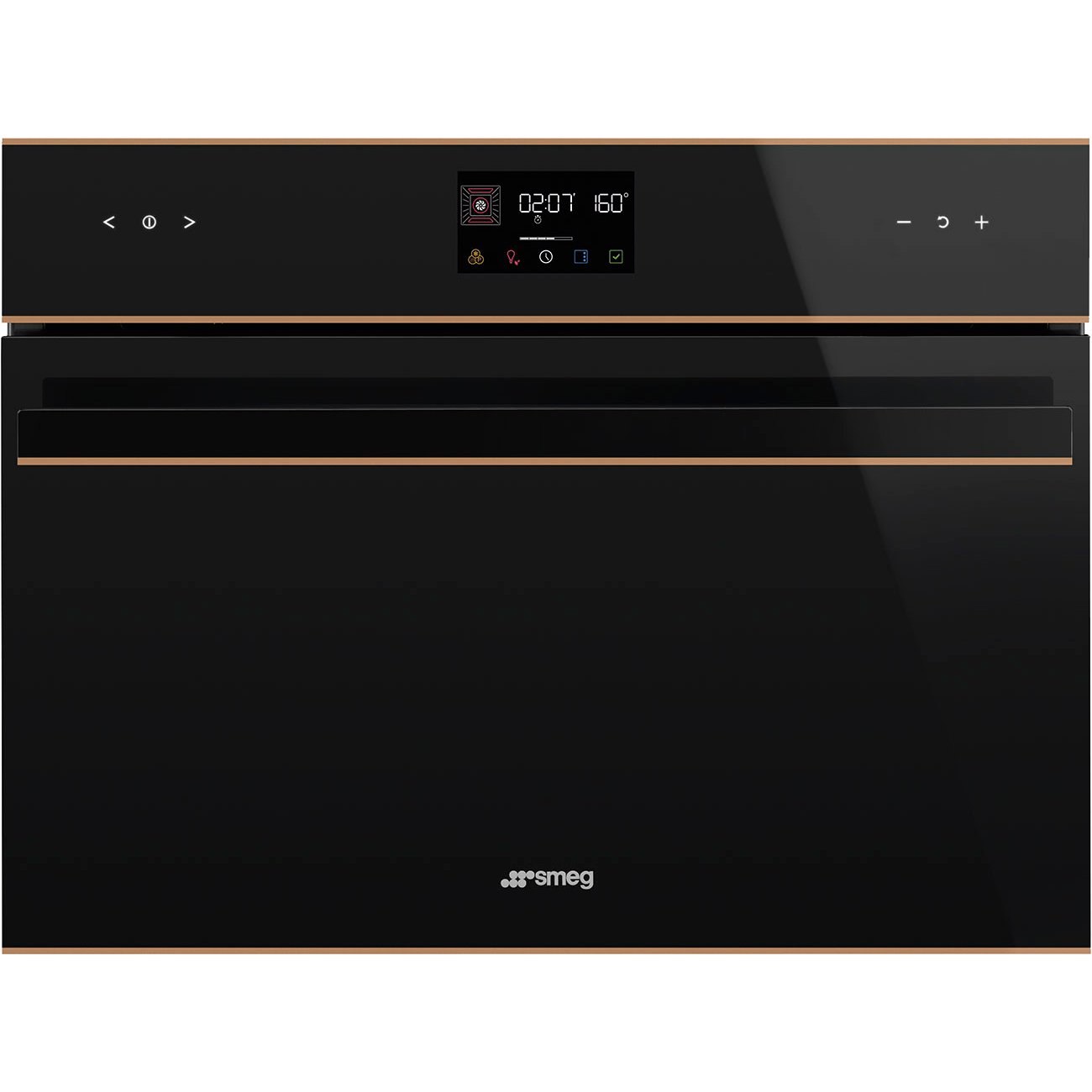 Духовой шкаф Smeg/ Компактный многофункциональный духовой шкаф, комбинированный с микроволновой печью, ширина 60 см, высота 45 см, 11 функций, чёрное стекло Eclipse, медный профиль