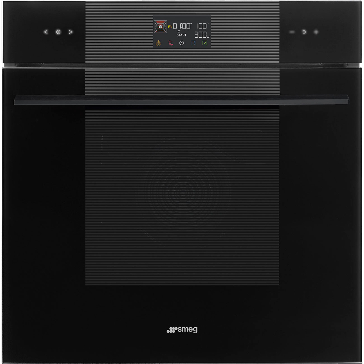Встраиваемые электрические духовки SMEG/ Многофункциональный духовой шкаф, комбинированный с микроволновой печью, 60 см, 11 функций, Deep Black (чёрное стекло). Класс энергопотребления А+