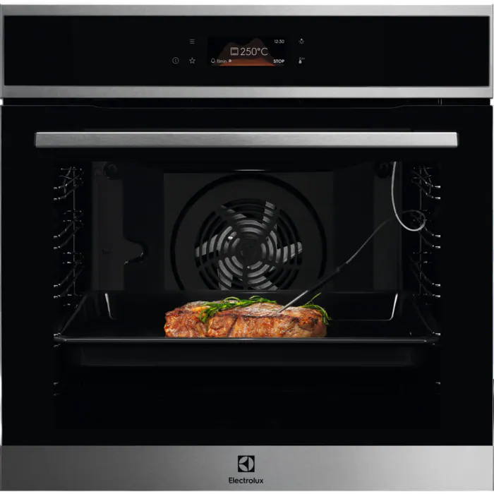 Паровая очистка облегчает уход за духовкой, эффективно размягчая загрязнения. Термозонд позволяет точно контролировать температуру внутри блюда.