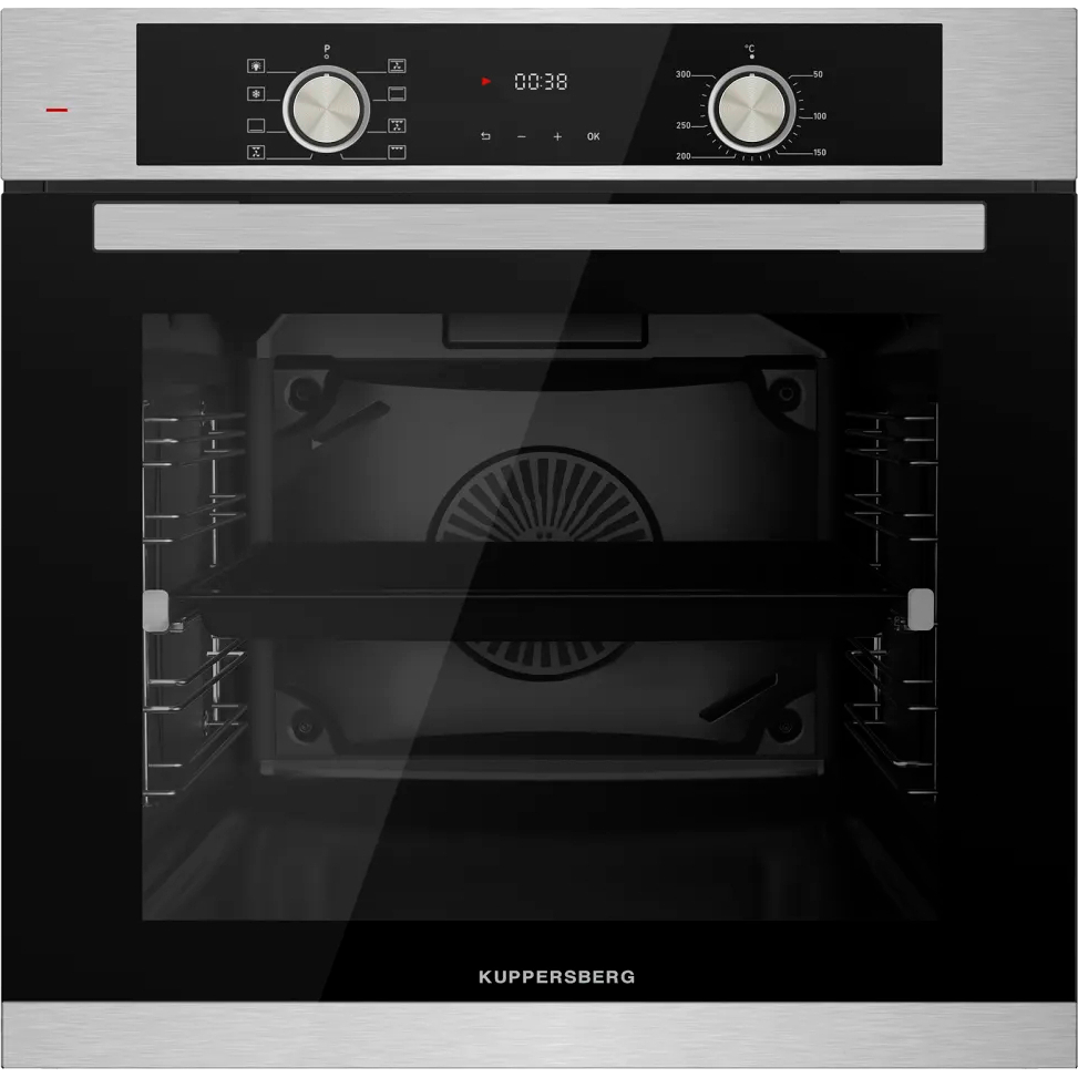 Встраиваемый духовой шкаф KUPPERSBERG/ Встраиваемый духовой шкаф KUPPERSBERG, электрический, High-Tech, 60 см, объем 80 л, 8 режимов, поворотное управление, макс. Температура 300 градусов, дисплей, таймер, цвет нержавеющая сталь/черный