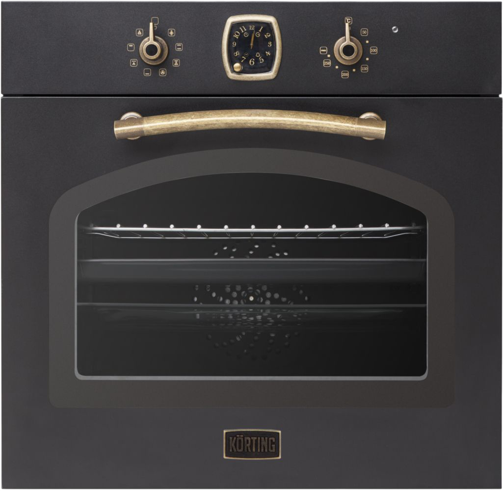 Встраиваемый духовой шкаф Korting/ Retro Calabria, 59.8 х 59.5 x 56 см, 8 режимов нагрева, гриль, таймер, телескопические направляющие, черный+бронза