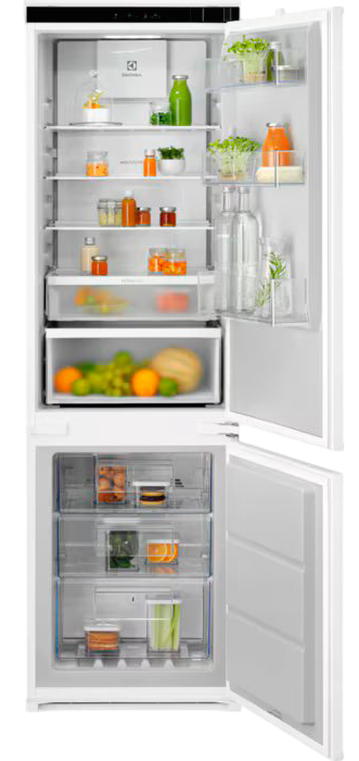 Встраиваемые холодильники ELECTROLUX/ Холодильник комбинированный, No Frost (морозильная камера), электронное управление, полезный объём: 248 л (186 + 62 л), перенавешиваемые двери, складная полка, лоток для яиц, 54x54.9x177.9 см