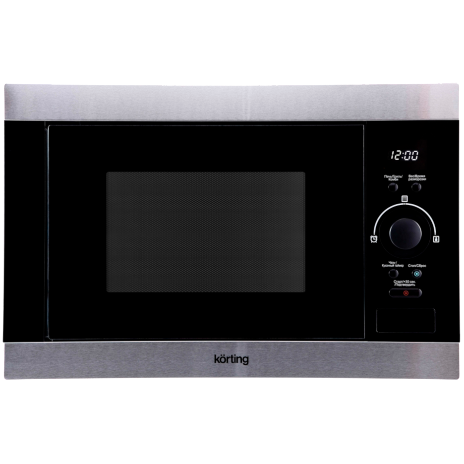 Встраиваемая микроволновая печь Korting/ 38.8х59.4х37.4 см, 25 л, 900 Вт, гриль: 1000 Вт, электронное управление, LED дисплей, 8 автопрограмм, нержавеющая сталь+черное стекло