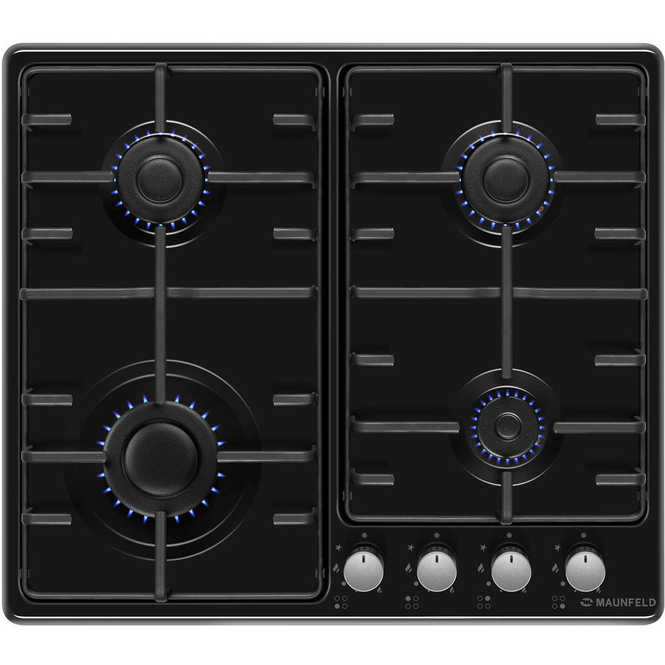 Газовая варочная панель MAUNFELD/ Газовая варочная панель MAUNFELD EGHE.64.3STS-EB/G, механическое управление, 4 конфорки, мощность конфорок 2600, 1700, 1700, 1000, электроподжиг, газ-контроль, цвет черный