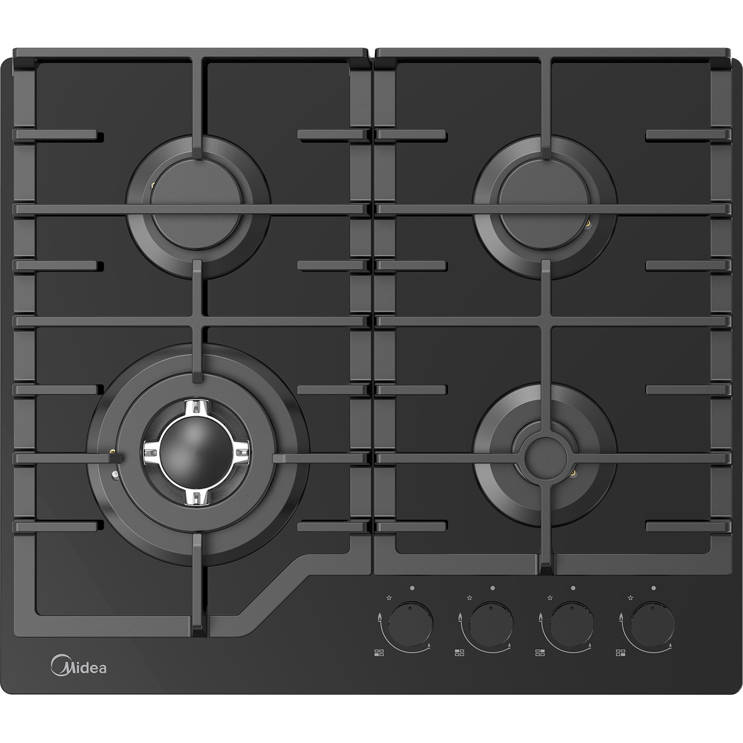 Газовая варочная панель MIDEA/ Газовая варочная панель MIDEA, 60 см, 4 конфорки, WOK-конфорка, чугунные решетки, автоподжиг, газконтроль, адаптер для кофе, цвет черный