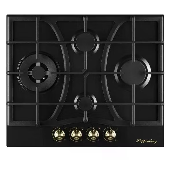 Варочная поверхность Kuppersberg/ Варочная поверхность Kuppersberg, газ, Classic, 61 см, автоматический электроподжиг, газ-контроль, SABAF конфорки, чугунные решетки, цвет антрацит, цвет фурнитуры бронзовый