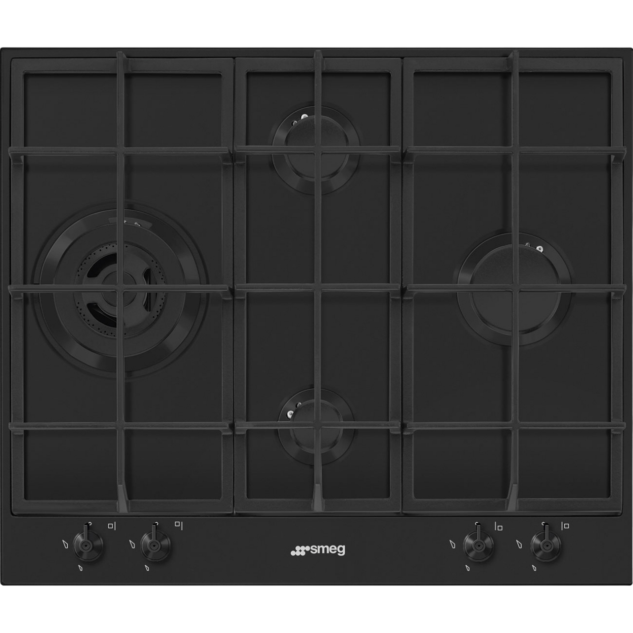 Варочная поверхность Smeg/ Газовая варочная поверхность, 60 см, Classica, 4 конфорки, поворотные переключатели, газ-контроль, автоматический электроподжиг, чугунные решетки, цвет черный