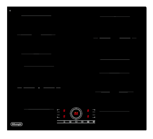 Встраиваемая варочная панель Delonghi/ Встраиваемая варочная панель Delonghi, индукция, 60 см, 4 зоны нагрева, сенсорное управление Cursore rotondo, 9 уровней мощности, Booster, таймер, пауза, блокировка от детей, цвет черное стекло