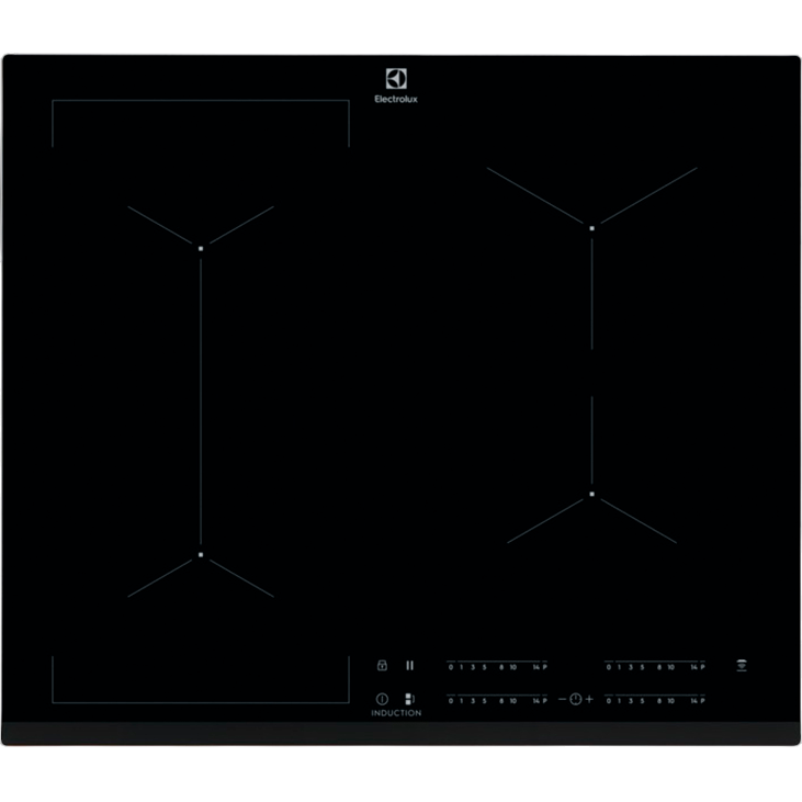 Встраиваемые индукционные панели ELECTROLUX/ индукционная на 4 конфорки, cтеклокерамика, мощность: 7200 Вт, независимая установка, слайдерное управление,размеры (ШхГ): 59x52 см