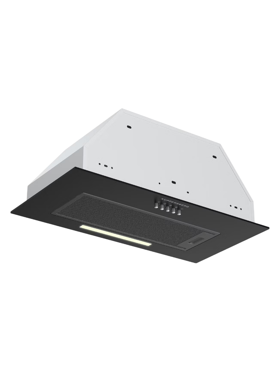Встраиваемая вытяжка Kuppersberg/ Встраиваемая вытяжка Kuppersberg, High-Tech, 54 см, механическое управление, 3 скорости, 650 м3/ч, периметральное всасывание, LED освещение, угольный фильтр KFS-1 (опция), уровень шума 51 дБ, цвет черный