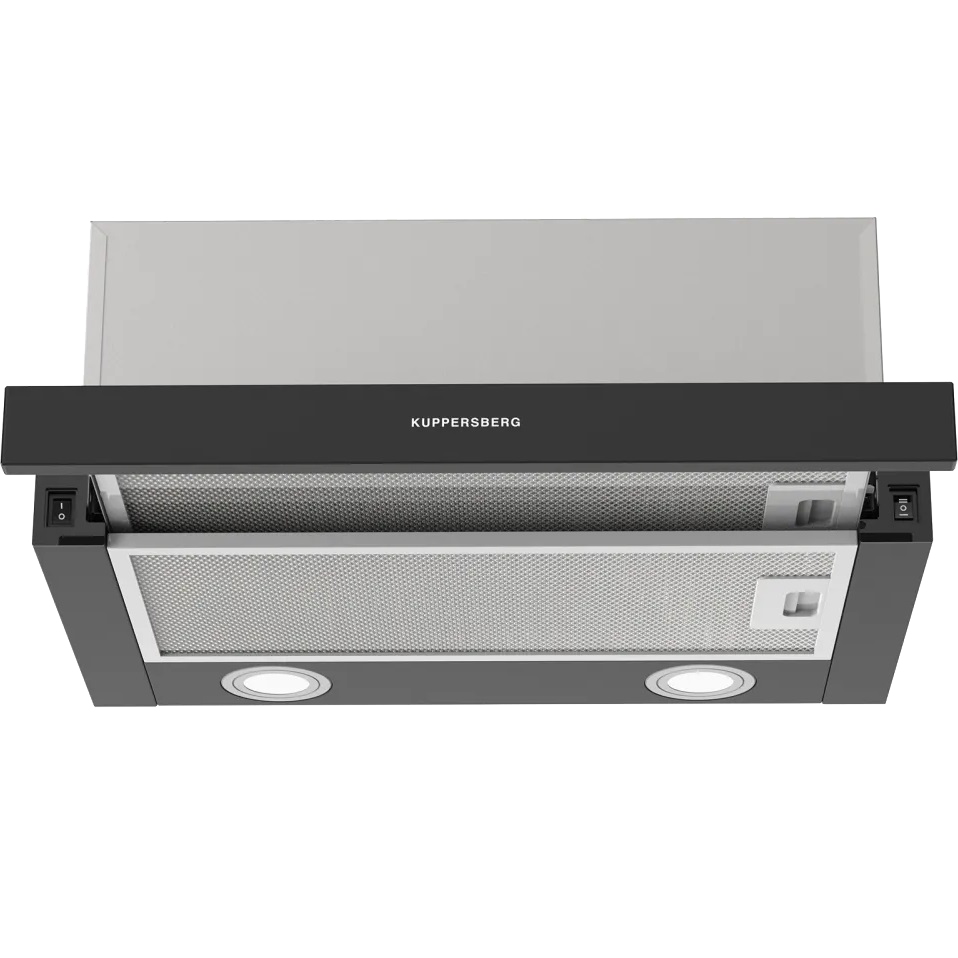 Встраиваемая вытяжка KUPPERSBERG/ Встраиваемая вытяжка KUPPERSBERG, телескопическая, 50 см, High-Tech, макс. Производительность 750 м3/ч, 2 скорости, механическое управление, светодиодное освещение, уровень шума 51 дБ, цвет черный