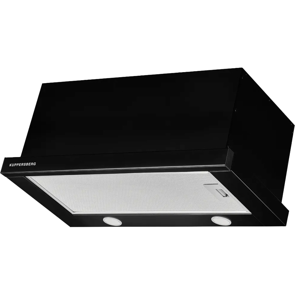 Встраиваемая вытяжка Kuppersberg/ Встраиваемая телескопическая вытяжка, ширина 60 см, отвод/рециркуляция, 1500 м3/час, механическое управление, 3 скорости, освещение 2х2 Вт, металлические жироулавливающие фильтры, угольный фильтр KF-ES (опция), 63.4 дБ, обратный клапан, шхвхг:55.2x25.5x28см, цвет черный ( ПОРТУГАЛИЯ )
