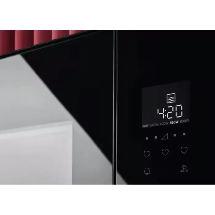 функция SteamSet — приготовление на пару для здорового питания; компактный размер (глубина всего 30 см) — подходит для установки даже в узких настенных шкафах; функция быстрого запуска на полной мощности (с интервалами в 30 секунд); автоматическое размораживание по весу (хлеб, рыба, мясо, птица). -Великобритания