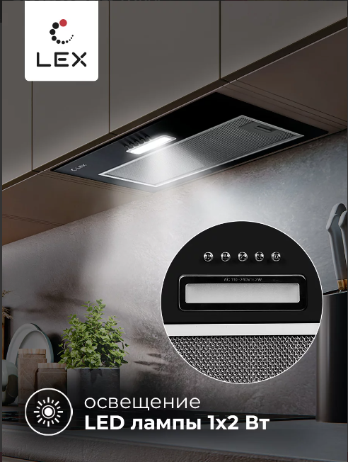 полновстраиваемая в шкаф на 60 см, 650 кубов, 3 скорости, светодиодная подсветка, гарантия 3 года