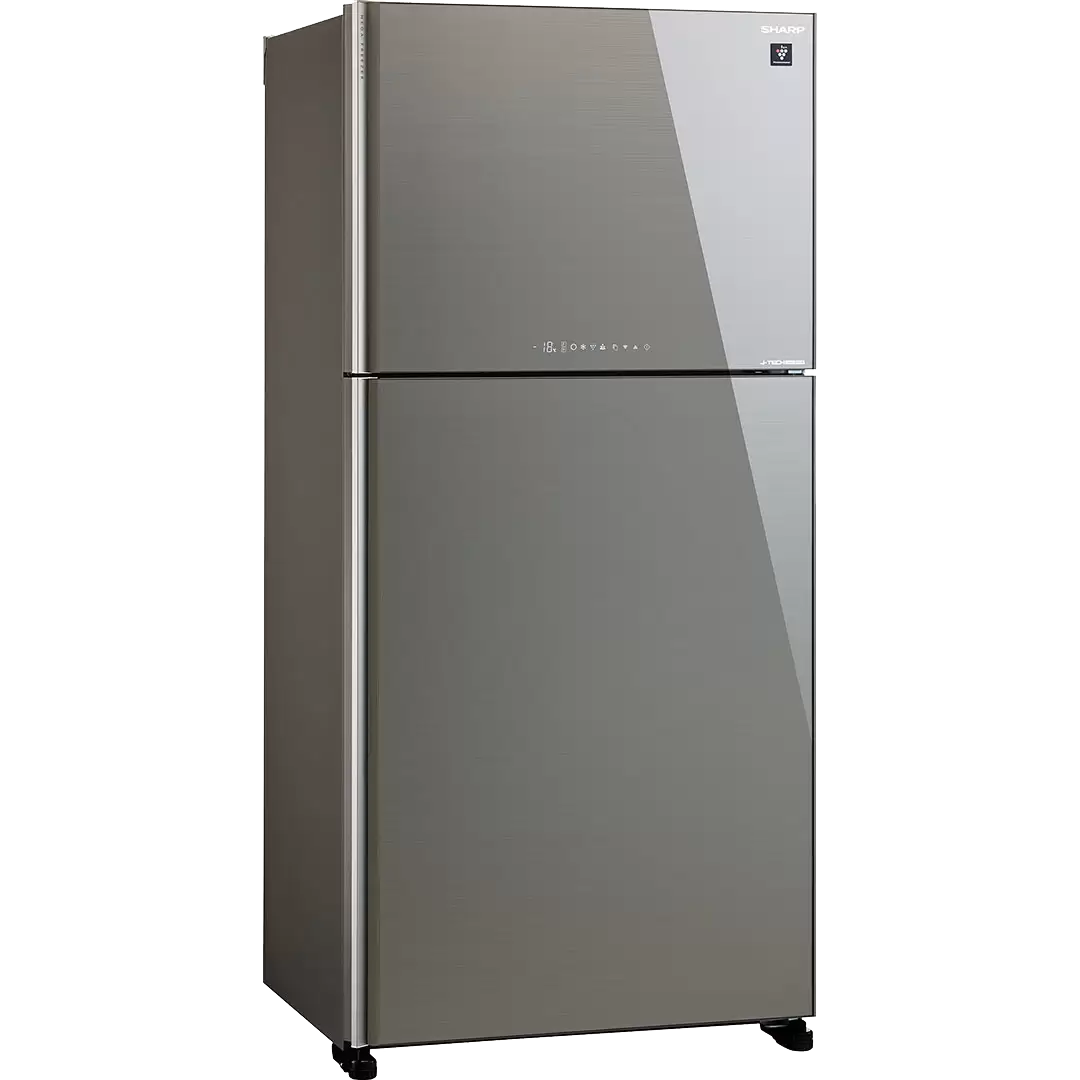 Модельный ряд 2018 года. Серия Grand Top. Холодильник-морозильник объединяет в себе все последние разработки корпорации SHARP: уникальный инверторный компрессор JTECH invert; система охлаждения Extra Cool, благодаря которой можно охладить напитки и еду до температуры, максимально близкой к уровню замерзания, но не замораживать их; функция заморозки Express Freezing, позволяющая приготовить лёд всего лишь за 93 минуты. Уникальная технология ионизации и очистки воздуха Plasmacluster (Плазмакластер) с помощью отрицательно и положительно заряженных ионов деактивирует бактерии и споры грибков плесени в воздухе внутри холодильника, предотвращая их воздействие на продукты и, тем самым, продлевая свежесть продуктов. Модель оснащена уникальной системой охлаждения Hybrid Cooling , которая обеспечивает быстрое и равномерное охлаждение воздуха в холодильной камере, предотвращая заветривание продуктов. Cистема охлаждения Full No Frost не даст образоваться наледи на стенках морозильной камеры и освободит пользователя от необходимости размораживания холодильника. Яркие светодиоды LED равномерно и ярко освещают всё внутреннее пространство холодильника. Внушительные полезные объемы холодильной камеры (422л) и морозильника (178л). Двухсекционный льдогенератор, расположенный в дверях морозильной камеры. Встроенная защита от перепадов напряжения. Класс энергоэффективности А++. Премиальная отделка дверей стеклом.