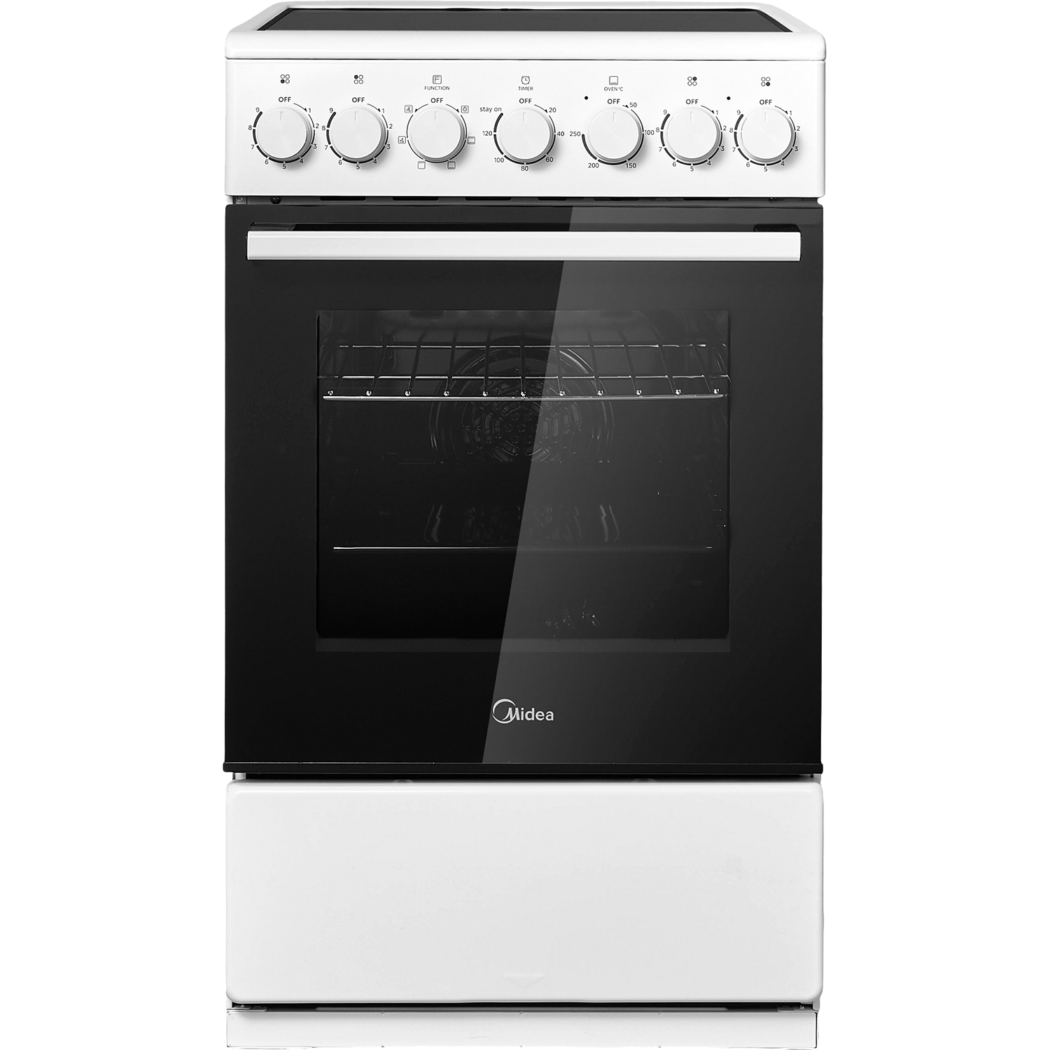 Электрическая плита Midea/ Электрическая плита Midea, отдельностоящая, электрическая варочная панель, 4 конфорки, механический таймер (120 мин), объем дух. шкафа 59 л, 6 режимов нагрева, цвет белый