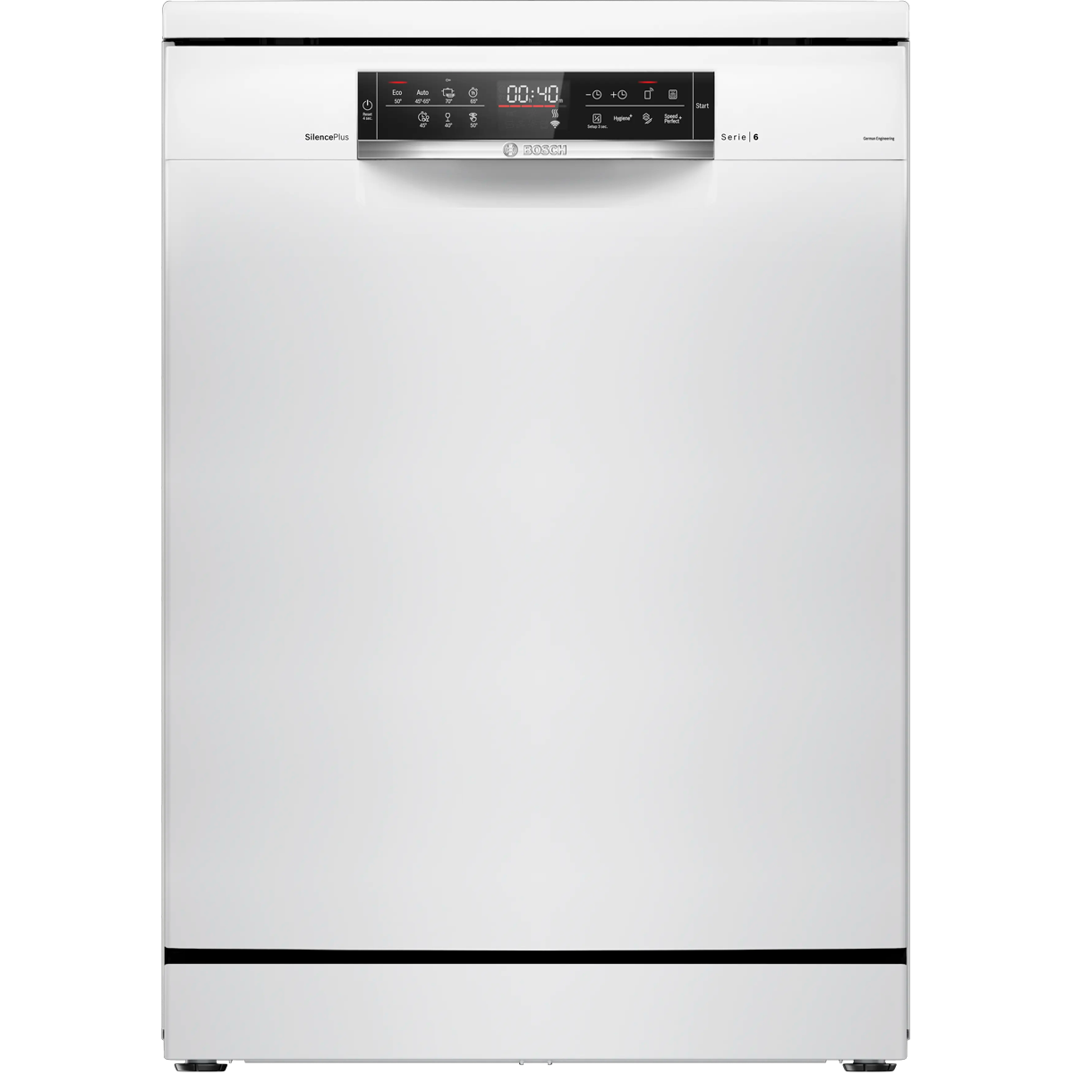 Посудомоечная машина BOSCH, отдельностоящая, 60 см, 13 комплектов, 6 стандартных программ, 4 температурных режима, технология защиты стекла, проточный нагревательный элемент, самоочистка фильтра, AquaSensor, дисплей, Wi-Fi, отсрочка запуска, 3 корзины, полный AquaStop, энергоэффективность А, цвет белый