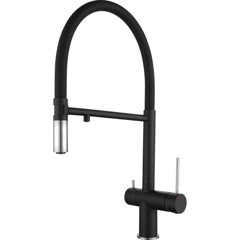 Rivelato Смеситель для кухни Adria U-обр. гибкий излив с краном питьевой воды D-35мм, монтаж: вертикально на раковину, материал: нержавеющая сталь, цвет: черный хром
