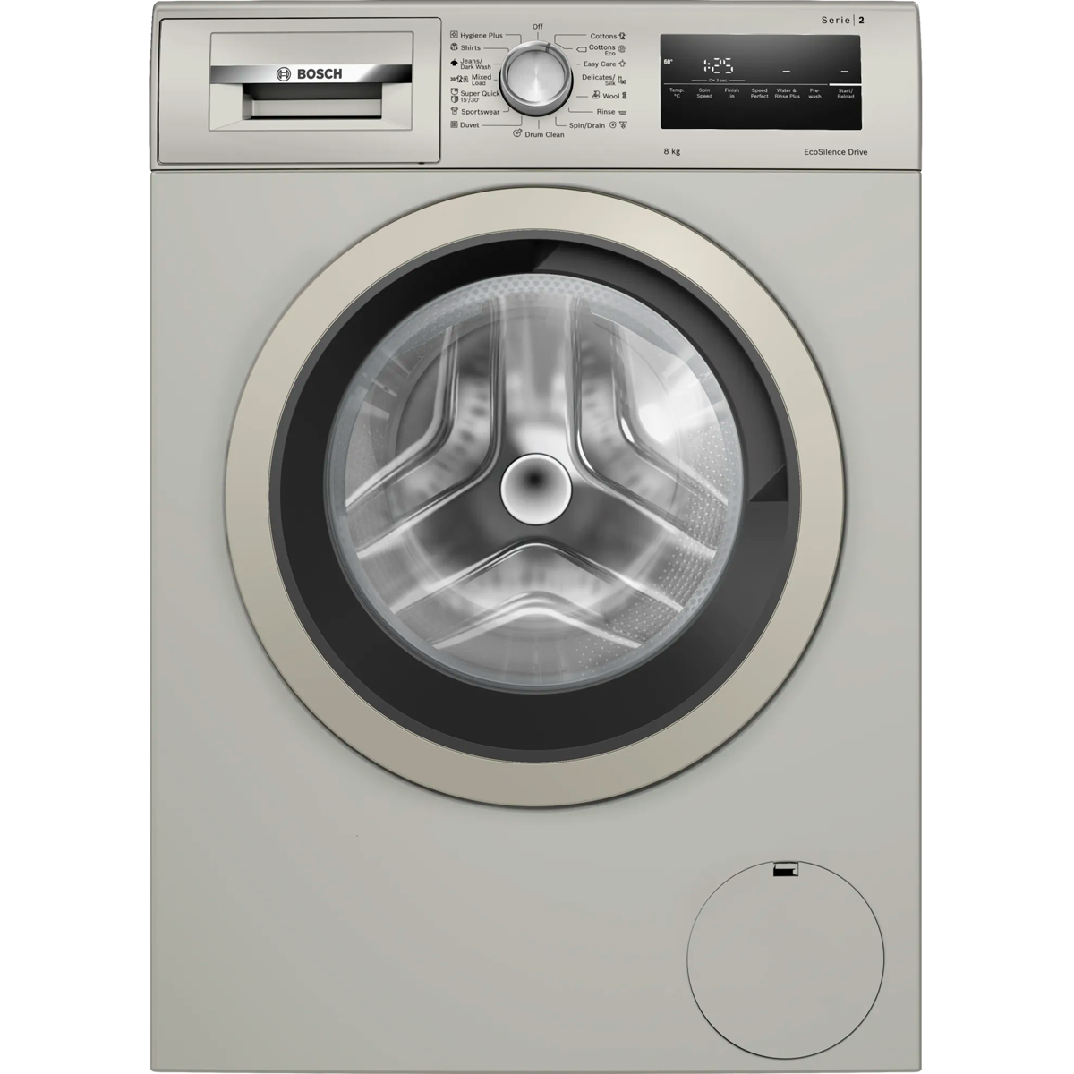 Панель управления на английском языке делает стиральную машину простой и понятной в использовании, даже если вы не говорите на других языках. Четкие символы и логика работы устройства избавляют вас от необходимости долго разбираться в настройках.