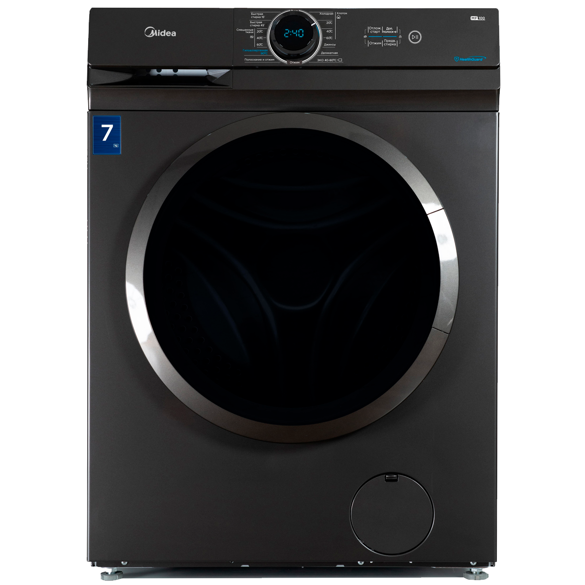 Стиральная машина MIDEA/ Стиральная машина MIDEA, узкая, фронтальная, электронное управление, дисплей, HealthGuard, максимальная загрузка 7 кг, 15 программ, скорость отжима 1200 об/мин, энергоэффективность А++, цвет темное серебро