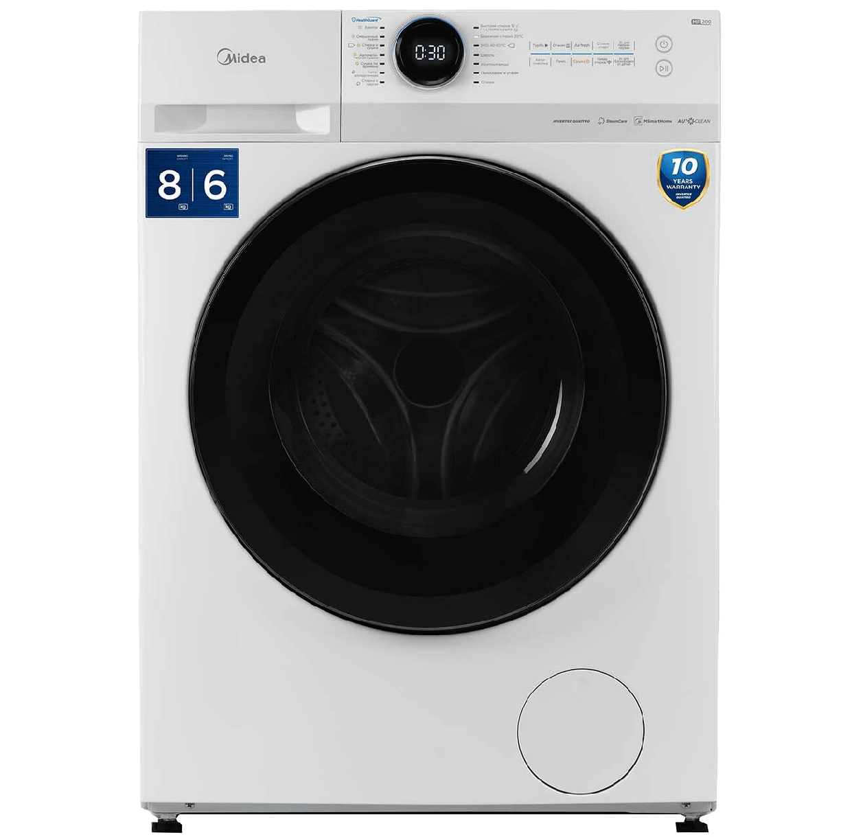 Стиральная машина MIDEA/ Стиральная машина MIDEA с функцией сушки, инверторный мотор, стирка с паром, управление через приложение, электронное управление, дисплей, автоочистка барабана, HealthGuard, AirFresh, максимальная загрузка стирка/сушка 8/6 кг, 14 программ, скорость отжима 1400 об/мин, энергоэффективность А+++, цвет белый