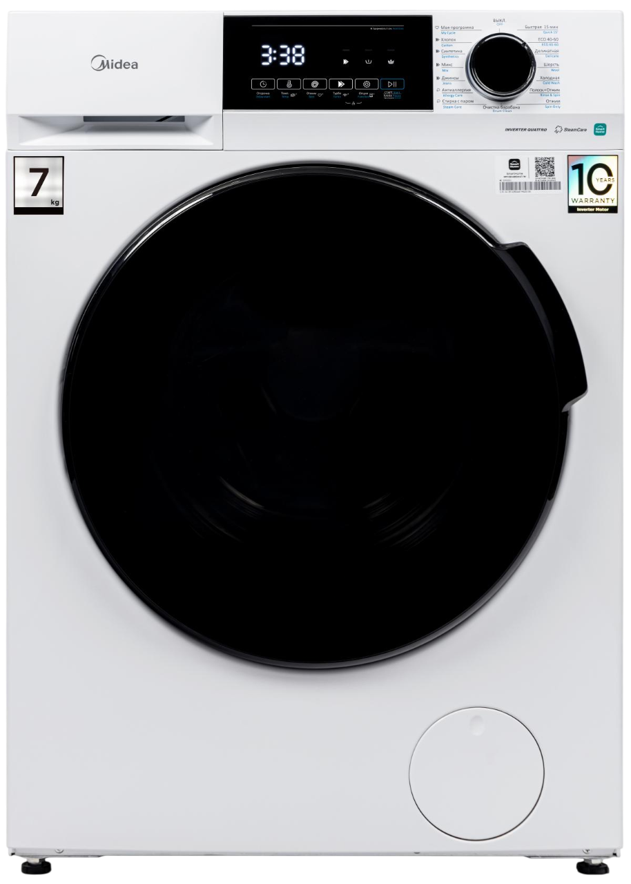 Стиральная машина MIDEA/ Стиральная машина MIDEA, SOLAR Series, узкая, фронтальная, загрузка 7 кг, 15 программ, 1200 об/мин, инверторный мотор, стирка с паром, электронное управление (Full Touch-панель) + управление через приложение MSmartHome, режим "турбо", энергоэффективность А+++, цвет белый
