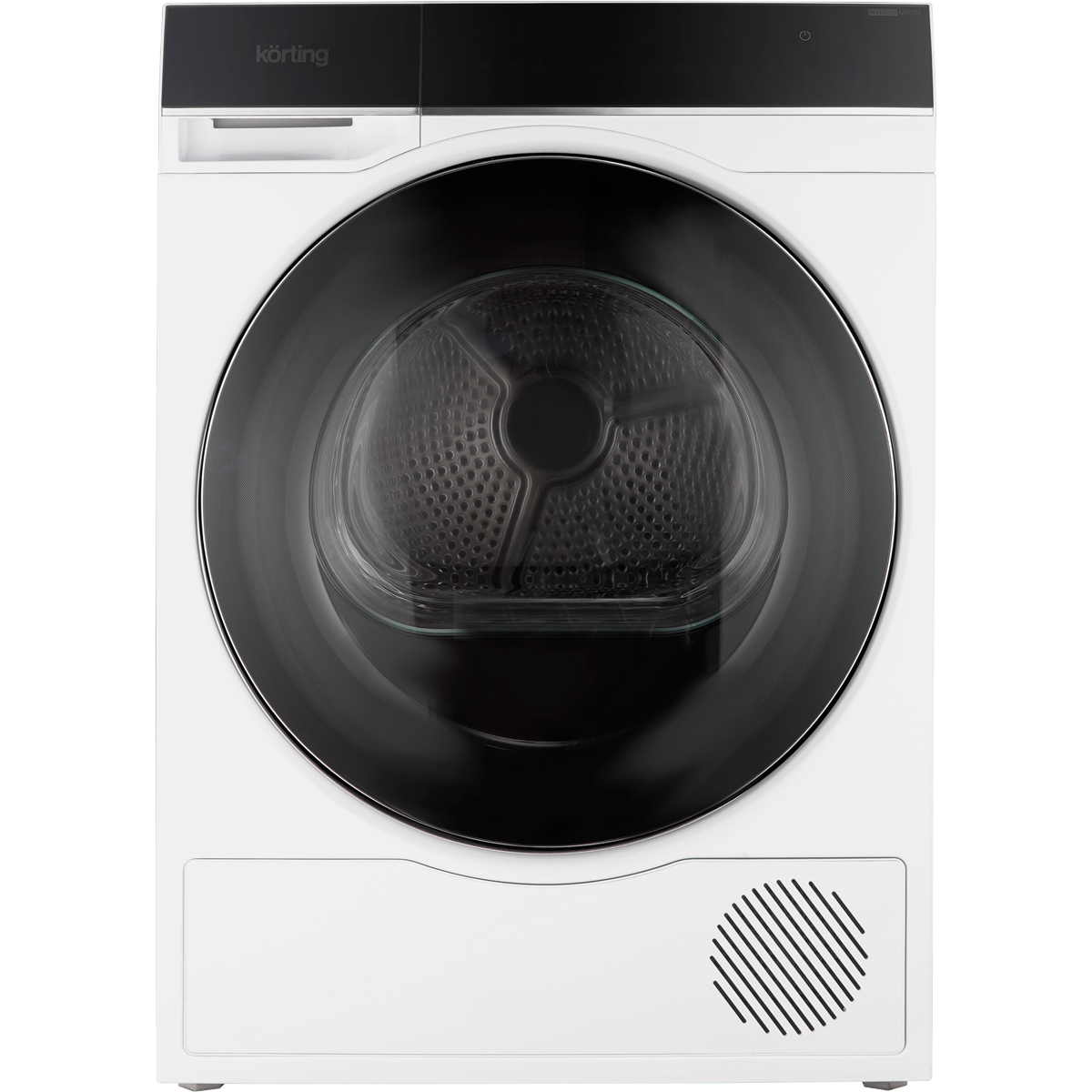 Сушильная машина KORTING/ Сушильная машина KORTING, отдельностоящая, глубина 63 см, загрузка 10 кг, электронное управление, цветной Full Touch дисплей, 12 программ, отложенный старт, подсветка барабана, инверторный мотор + инверторный компрессор, сушка по влажности/времени, реверсивное вращение барабана, ворсовый фильтр, функция защиты от сминания, тепловой насос, энергоэффективность А+++, уровень шума 68 дБ, цвет белый
