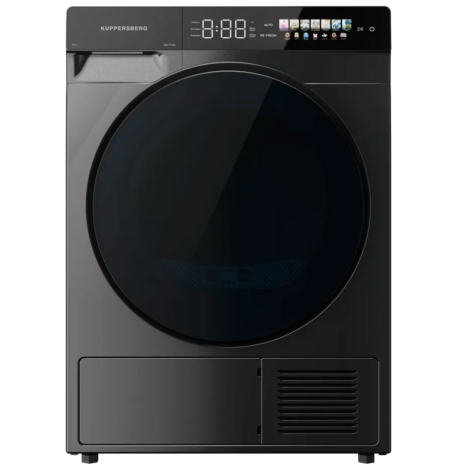 Сушильная машина KUPPERSBERG/ Сушильная машина KUPPERSBERG, High-Tech, загрузка 10 кг, 16 программ, тепловой насос, отсрочка старта, реверс барабана, ультрафиолет, сенсорное управление, блокировка от детей, энергоэффективность А+, цвет серый