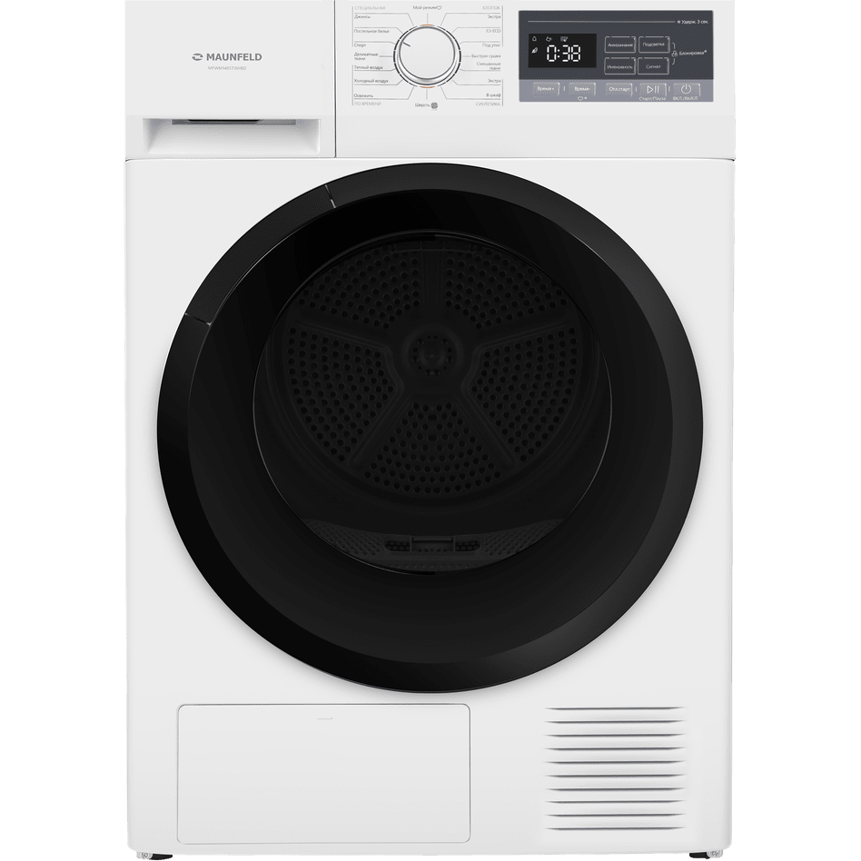 Сушильная машина/ Сушильная машина с тепловым насосом, отдельностоящая, фронтальная, 16 режимов, максимальная загрузка 8 кг, электронное управление, дисплей, подсветка барабана, звуковой сигнал, энергоэффективность A+, цвет белый