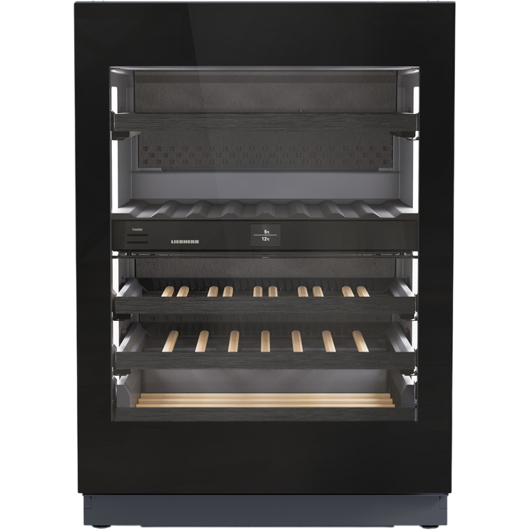 Винные шкафы Liebherr/ Vinidor Selection, высота 86-92 см, 2 темп. зоны, дверь стеклопакет, рамка двери GlassBlack, TipOpen, сенсорный дисплей Touch&Swipe. Важно: увеличенная высота встраивания: 86-92 см