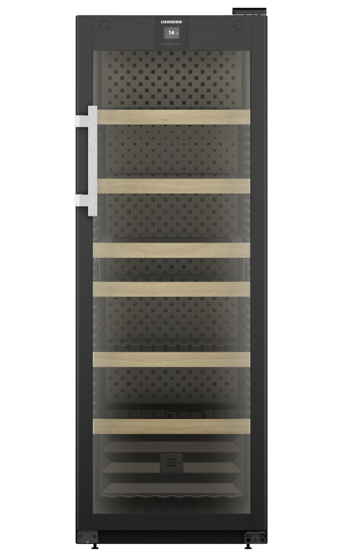 Винный шкаф LIEBHERR/ Серия Perfection, дверь со стеклопакетом с защитой от УФ-излучения, ручка с толкателем, электронный замок, в. 168,4 см, ш. 60 см, макс. кол-во бутылок Бордо (0,75 л): 158 бут., черный цвет