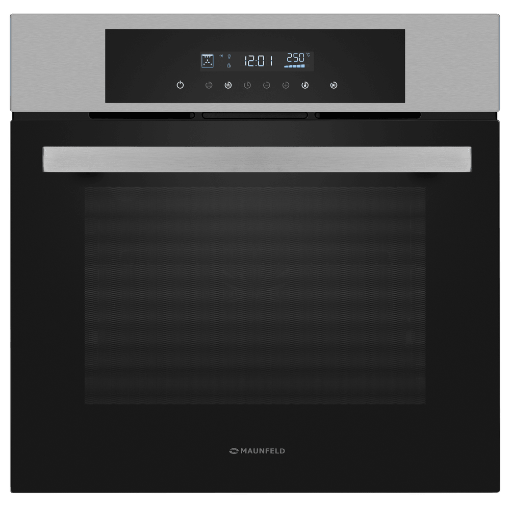 Шкаф духовой электрический MAUNFELD/ Тип: электрический 60 см, 60 л, таймер, 8 функций, сенсорное управление, гидролизный тип очистки, нержавеющая сталь