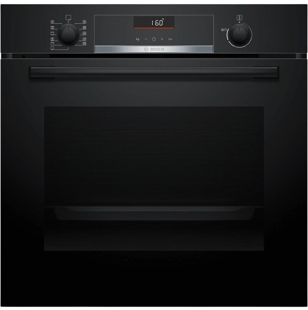 Духовой шкаф Bosch HBG536EB4 имеет элегантный фасад в чёрном цвете и аккуратной фурнитурой создают впечатление минимализма и премиального качества, которое гармонично вписывается в современные кухни. Корпус продуман до мелочей: компактные габариты (высота 59.5 см, ширина 59.4 см, глубина 56.7 см) позволяют установить прибор в нишу стандартного размера (60–60.4 х 56–56.8 х 55 см), а чёрная отделка дверцы и элементов управления придаёт интерьеру строгую, но уютную эстетику. Внутренний объём 71 литр обеспечивает достаточно пространства для приготовления больших блюд и многослойных запеканий, а аккуратное расположение галогенного освещения выгодно подчёркивает продукт даже при закрытой дверце. Интерфейс сочетает электронное управление с сенсорными поворотными элементами, что даёт быстрый и интуитивный доступ к функциям: LCD-дисплей отображает текущую температуру, режим и оставшееся время, а электронные часы и таймер помогают синхронизировать процесс приготовления с другими задачами. Модель оснащена восемью режимами нагрева и диапазоном температур от 50 до 275 °C, среди которых 3D-горячий воздух равномерно распределяет жар по всем уровням, Gentle-режим заботливо готовит нежные продукты, а режим Pizza оптимизирован для тонкой хрустящей корочки. Верхний и нижний жар, большой гриль и термогриль расширяют возможности для классических запеканий, румянения и образования аппетитной корочки, а функция Air Fry позволяет добиться хрустящей текстуры с минимальным количеством масла.
