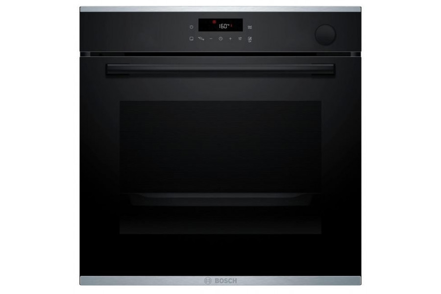 Serie 4,Встраиваемый духовой шкаф с добавлением пара Bosch, Auto Pilot 15, объем 71 л , 8 режимов нагрева, 3D Hotair, Soft move door,телескопические направляющие 1уровень,гидролиз+каталитическая очистка задней стенки,сенсорное управление,цвет черный+профиль из нержавеющей стали