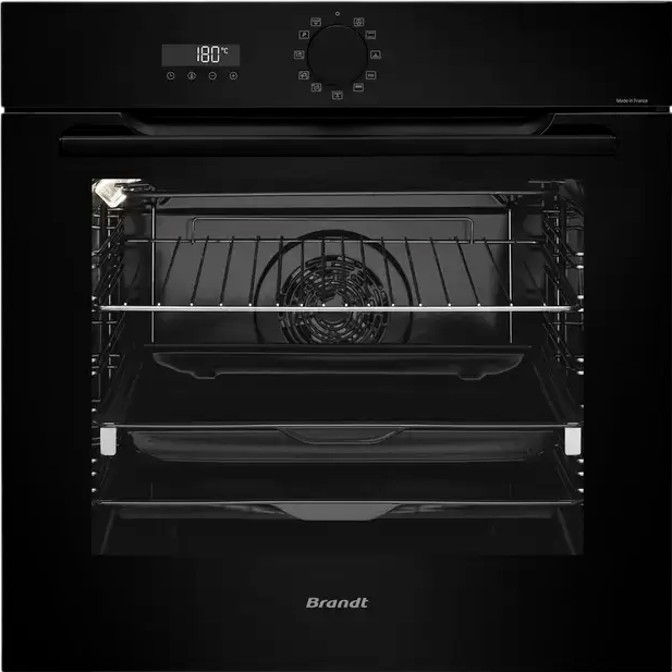 Brandt built-in oven, 9 cooking functions, 73 L, pyrolytic cleaning, grill, rotary knob, A+ energy efficiency, black color