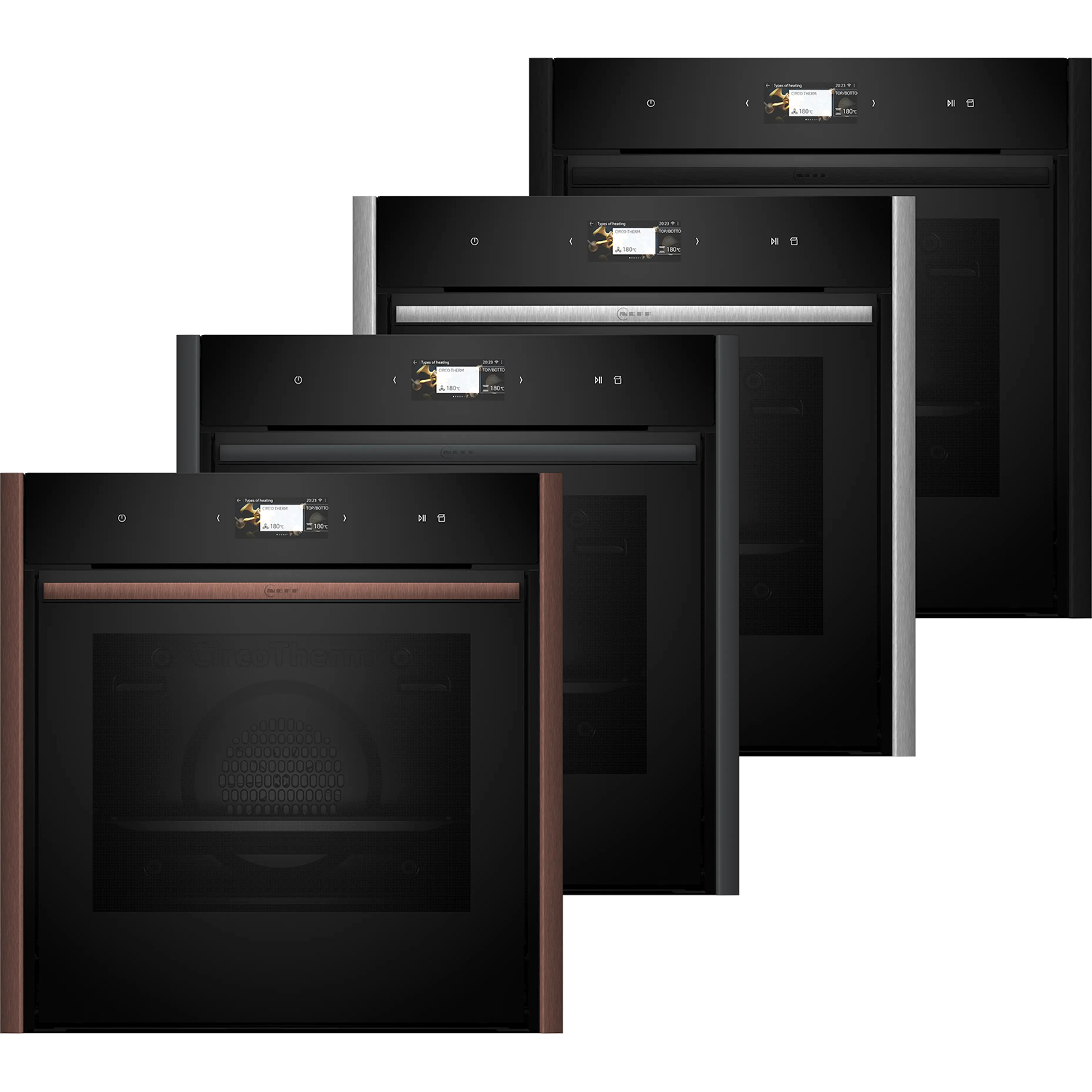 Встраиваемый духовой шкаф NEFF/ Без боковых профилей и ручки (Аксессуар заказывается отдельно),, объем 71 л, 23 режима нагрева, электрический гриль, TFT-дисплей, сенсорное управление , полностью утапливаемая дверь Hide, 3 стекла в дверце, LED освещение, FullSteam, телескопические направляющие (на 1 уровень), Home Connect, термощуп