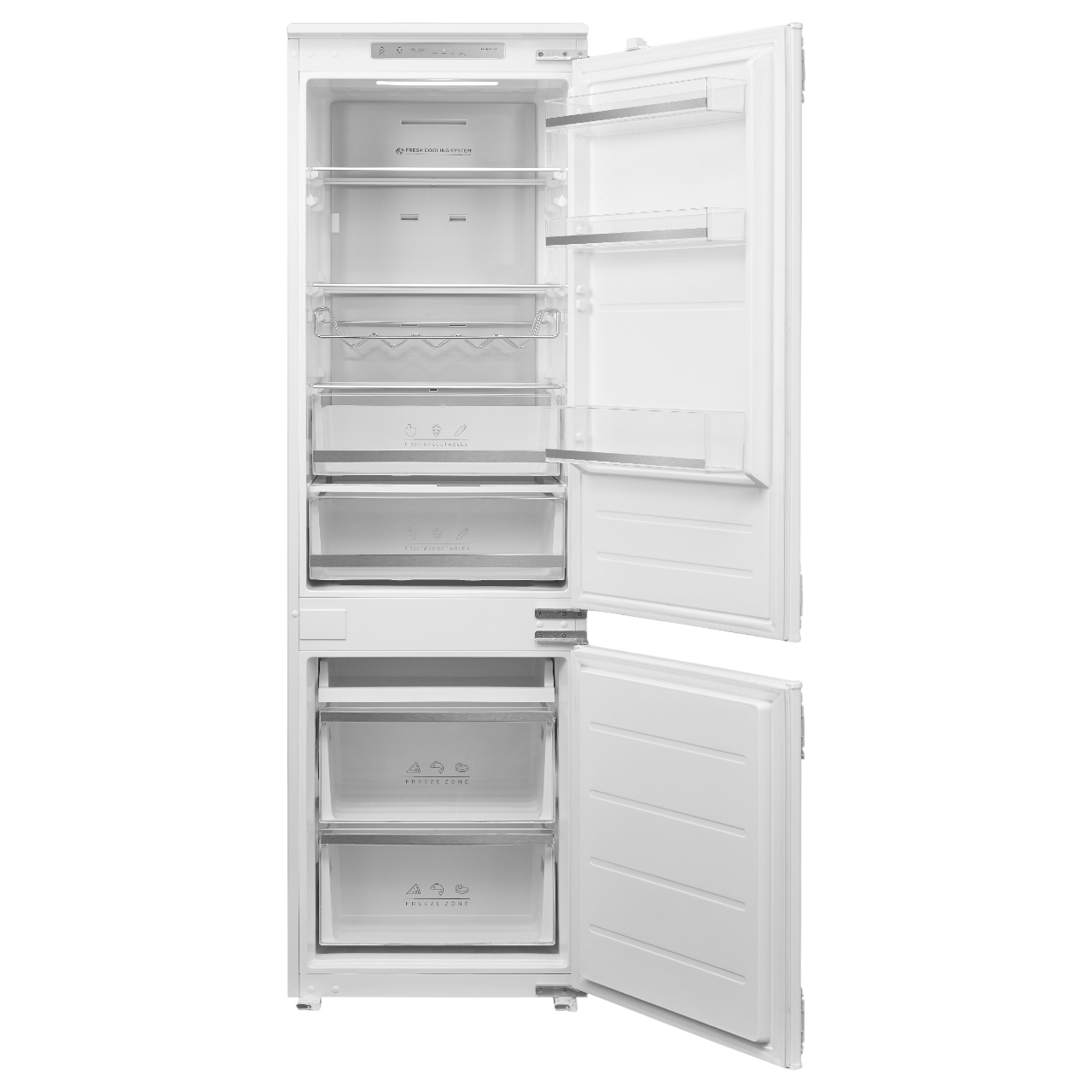 Встраиваемый холодильник KORTING/ Встраиваемый холодильник KORTING, объем 274 л (198+76), электронное управление, дисплей, No Frost, LED подсветка, инверторный компрессор, перенавешиваемые двери, слайдерное крепление, динамическое охлаждение, задняя стенка Cold Metal, зона свежести, интенсивная заморозка, режим "Отпуск", отсек для овощей, энергоэффективность А++, цвет белый