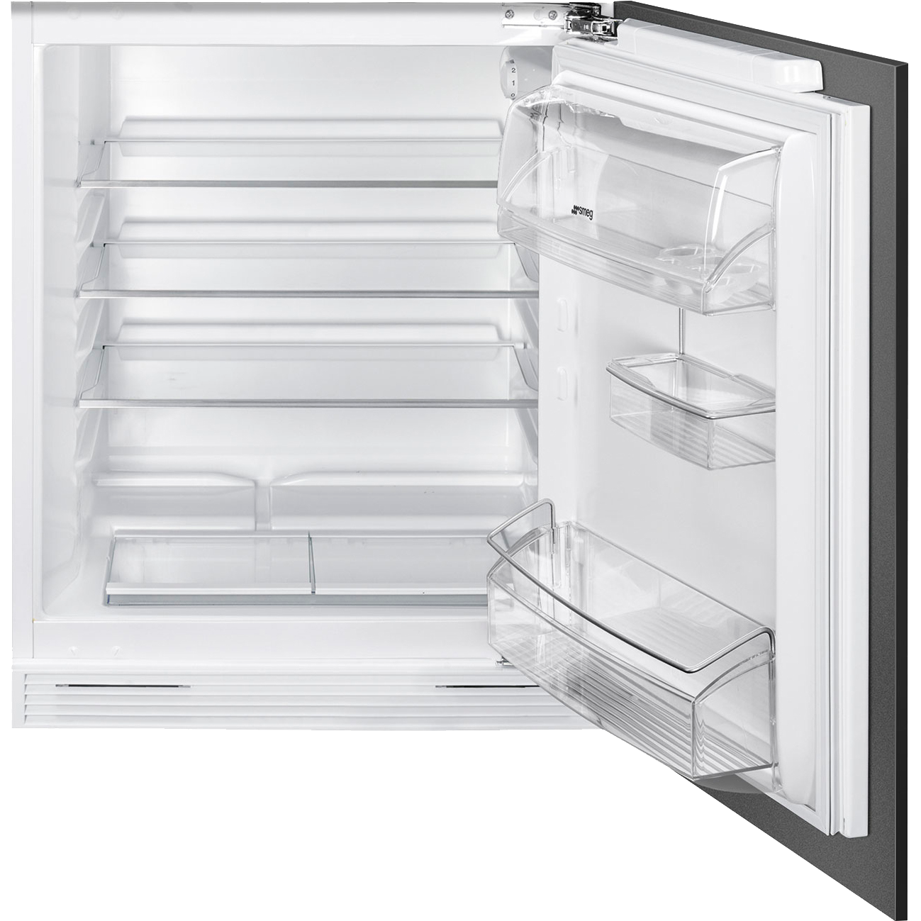 Встраиваемый холодильник SMEG/ Встраиваемый холодильник SMEG, под столешницу, перенавешиваемая дверь, LED освещение, электромеханический контроль температуры, объем 134 л, энергоэффективность Е, уровень шума 38 дБ, цвет белый