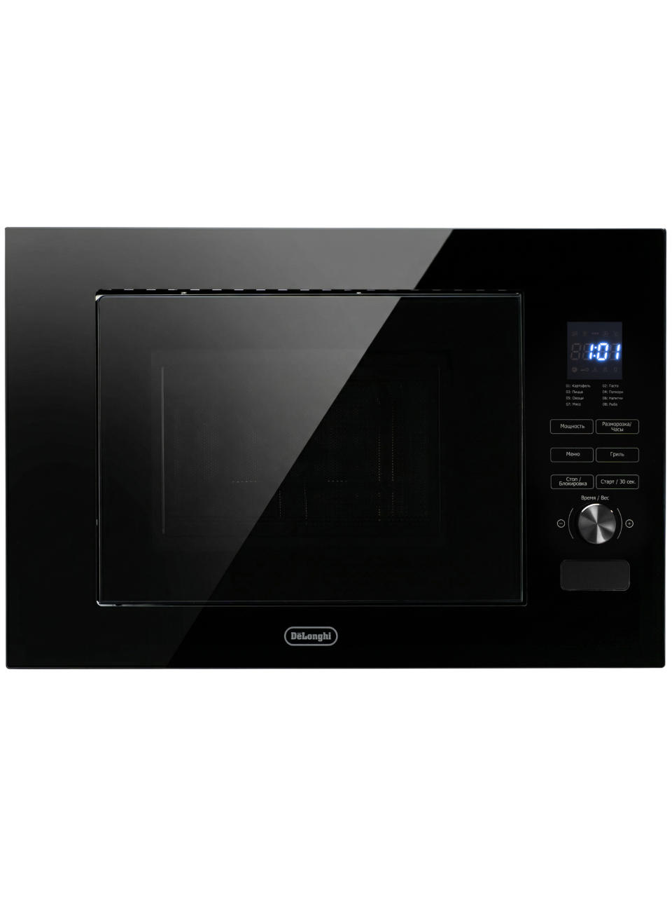Встраиваемая микроволновая печь Delonghi/ Встраиваемая микроволновая печь Delonghi, объем 20 л, сенсорное управление, цифровой дисплей, таймер, гриль, 5 уровней мощности, 8 автопрограмм, цвет черное стекло
