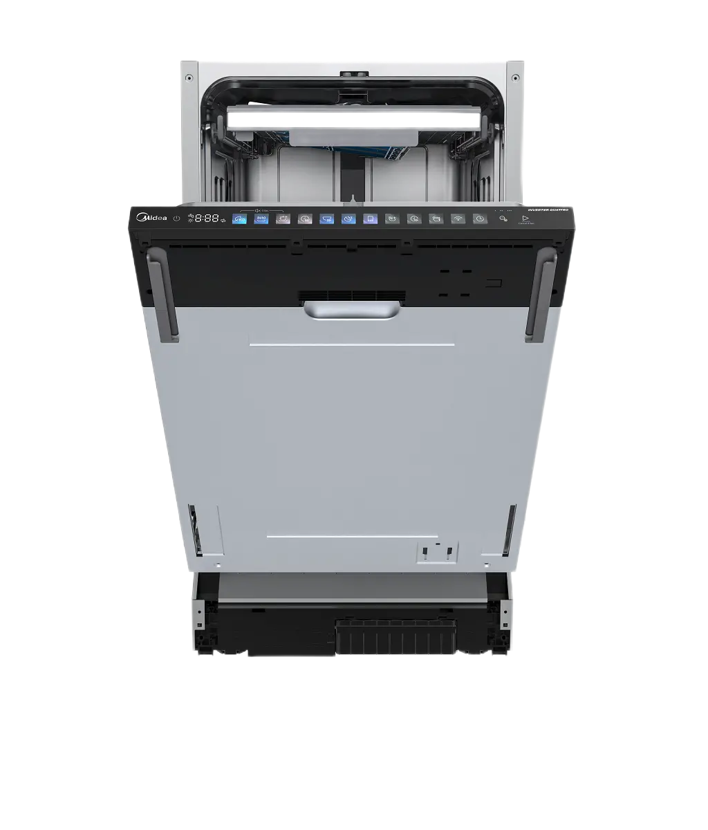 Встраиваемая посудомоечная машина Midea/ MDK/Встраиваемая ПММ, 45 см, 10 компл., 3 корзины, 3-я корзина Infinity Plus, А++/A/A, сенсорное управление SuperReality, дисплей, 6+4 программ (Авто программа), функция усиленной мойки (Power Wash), функция доп. сушки (Extra Drying), конденсационная сушка, Отложенный старт: 1-24 часов, Dual Zone Wash (зональная мойка), Ионизатор (ION Dishfresh), Использование средств "All in one", Система полной защиты от протечек AquaStop, внуренняя подсветка, боковой и