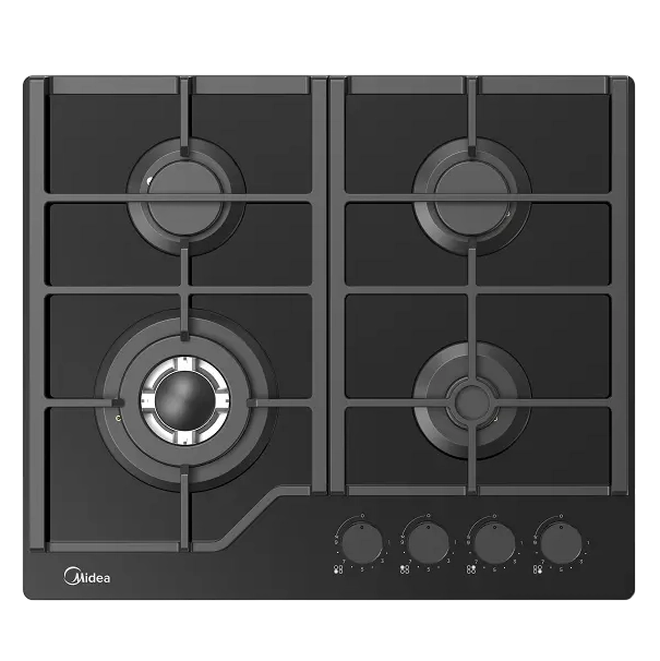 Газовая варочная панель MIDEA/ Газовая варочная панель MIDEA, 60 см, 4 конфорки, закаленное стекло, WOK-конфорка, чугунные решетки, автоподжиг, газконтроль, адаптер для кофе, цвет черный