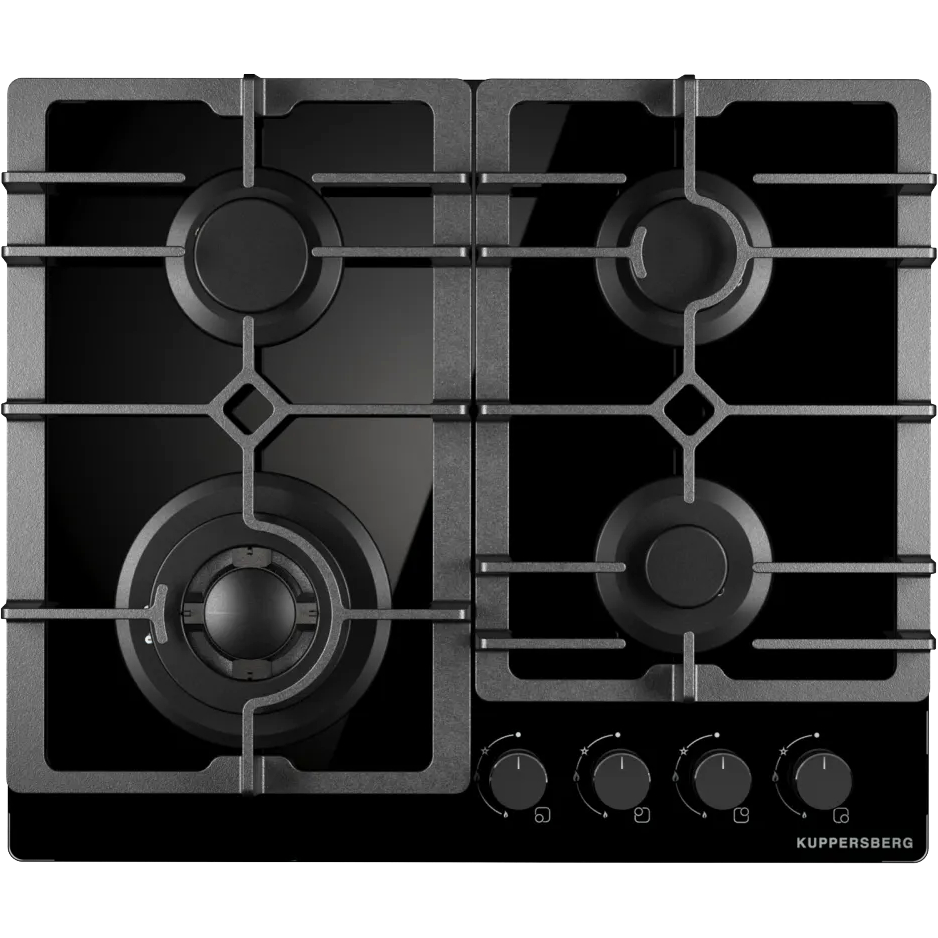 Варочная поверхность Kuppersberg/ KITCHEN RETAIL / Варочная поверхность Kuppersberg, газ, High-Tech, 60 см, автоматический электроподжиг, газ-контроль, форсунки под сжиженый газ, SABAF конфорки, WOK конфорка, чугунные решетки, цвет черный, цвет фурнитуры черный