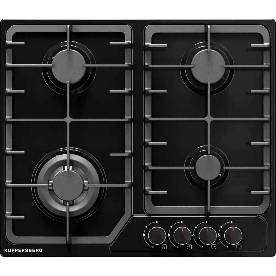 Варочная поверхность Kuppersberg/ Варочная поверхность Kuppersberg, газ, High-Tech, 58 см, автоматический электроподжиг, газ-контроль, форсунки под сжиженый газ, SABAF конфорки, чугунные решетки, цвет черный, цвет фурнитуры черный