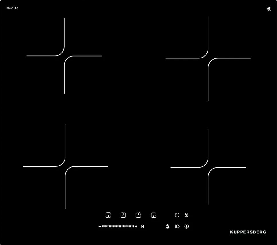 Варочная поверхность Kuppersberg/ Варочная поверхность Kuppersberg, High-Tech, индукция, 60 см, 4 зоны нагрева, 9 уровней мощности, inverter, таймер, пауза, Booster, слайдерное управление, цвет черный