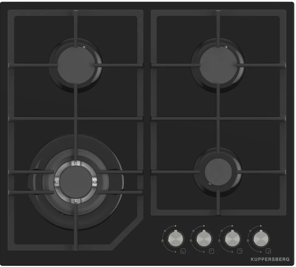 Варочная поверхность Kuppersberg/ Варочная поверхность Kuppersberg, газовая, High-Tech, 61 см, автоматический электроподжиг, газ-контроль, механическое управление, конфорки REMAY, цвет черный, цвет фурнитуры черный/нержавеющая сталь