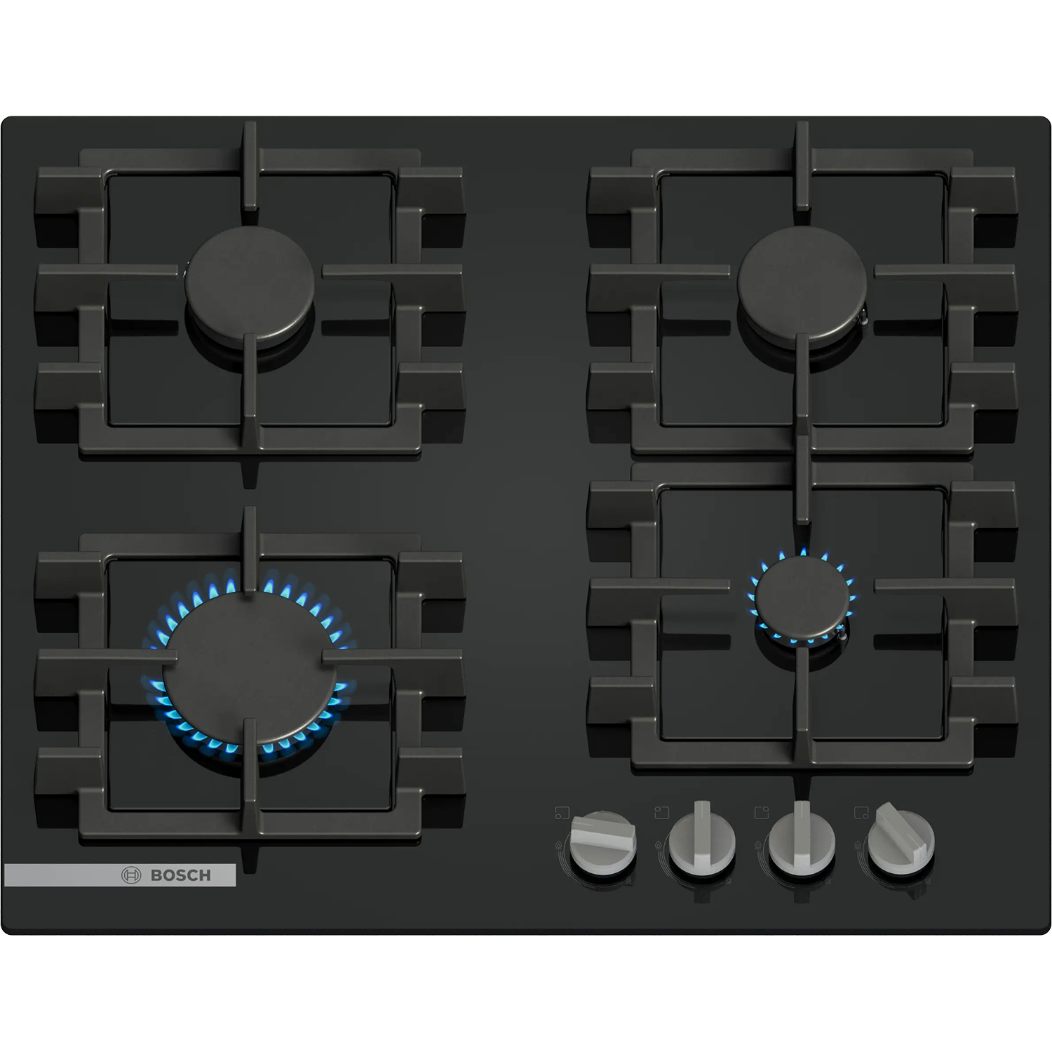 Газ, 4.5х59x52 см, закаленное стекло, 4 конфорки, газ-контроль, автоподжиг, черный цвет