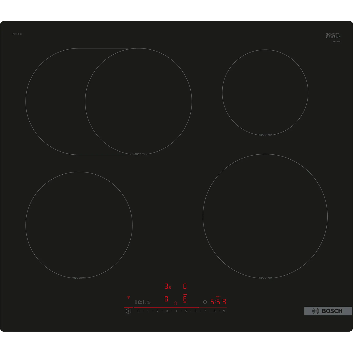 Индукционная, 60 см, индукция, скошенные края, сенсорное управление, черный